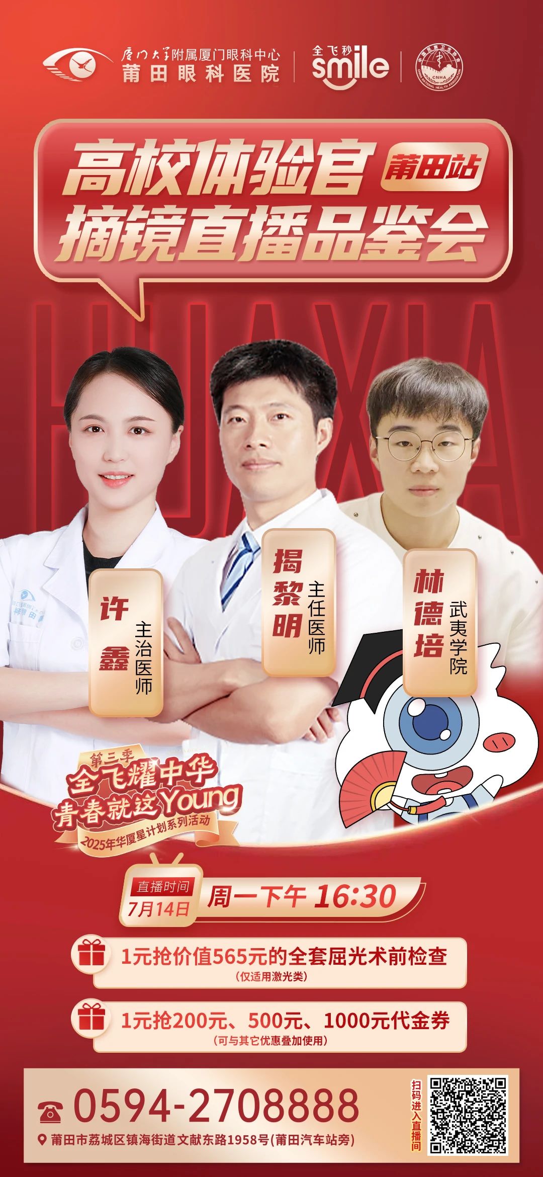 有莆田眼科特邀专家,厦门眼科中心揭黎明主任医师、经验丰富的许鑫医生、还有武夷学院的林德培同学分享体验~